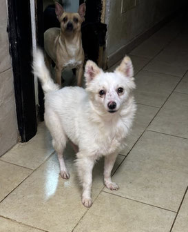 Erna und Hilde sind zwei sehr liebenswerte Italienische Volpini Schwestern. Sie wurden vor zwei Monaten an einer Schnellstraße in unserem Dorf in Turi/Apulien ausgesetzt, wo sie immer im Zickzack umherirrten und Gefahr liefen überfahren zu werden. Bei dem Versuch, sich auf einem anliegenden Grundstück Schutz zu suchen, wurden sie von den Bewohnern immer wieder mit Besen und Harken auf die Straße zurückgetrieben. Zum Glück konnten sie rechtzeitig gesichert werden und kamen so zu uns aufs Canidiso. Anfangs waren die beiden sehr schüchtern, verängstigt, schmutzig und verfilzt. Sie kannten den nahen Menschenkontakt nicht und waren auch noch nie in einem Haus. Mit unseren vorhandenen Hunden haben sie auf Anhieb Freundschaft geknüpft, in der Hundegruppe sind sie sozialisiert und werden akzeptiert. Schnell haben sie sich alles abgeschaut und festgestellt, wie schön doch Streicheleinheiten sein können. Inzwischen haben sie keine Scheu mehr auf den menschlichen Schoß oder ins Haus zu kommen. Die beiden Schwestern sind ca. 1,5 Jahre alt und bringen jeweils 6 Kilo auf die Waage. Scheinbar hatten beide schon Babys, sind aber inzwischen kastriert. Das Ergebnis für den Leishmaniosetest steht noch aus. Sie sind verträglich mit Hunden jeglicher Größe und Geschlecht. Sie kennen und akzeptieren auch Katzen. Wie sie sich gegenüber Kindern verhalten, konnte bisher nicht getestet werden. Aber aufgrund ihrer Liebenswürdigkeit sehen wir keine Probleme, wenn darauf geachtet wird, dass genügend Freiraum und Rückzugsmöglichkeiten gegeben werden. Erna ist etwas mutiger als Hilde. Hilde lässt ihrer Schwester gerne den Vortritt erstmal alles zu checken und traut sich dann hinterher. Wir wünschen uns für Erna und Hilde liebevolle Menschen mit engem Familienanschluss. Wie für alle unsere Schützlinge aus dem Tierschutz müssen natürlich auch für Erna und Hilde das nötige Verständnis, Zeit, Geduld und Liebe aufgebracht werden, um in Ruhe anzukommen und alles kennenzulernen. Auch sie tragen ein Päckchen Leid ihrer Vergangenheit auf ihren kleinen Schultern. Gewaltfreie Erziehung wird vorausgesetzt. Beide sind gechipt und geimpft, die EU-Pässe stehen Ende Januar zur Verfügung. Kontakt und Infos: Tierschutz Apulien oder per Mail an ptapuglia@gmail.com